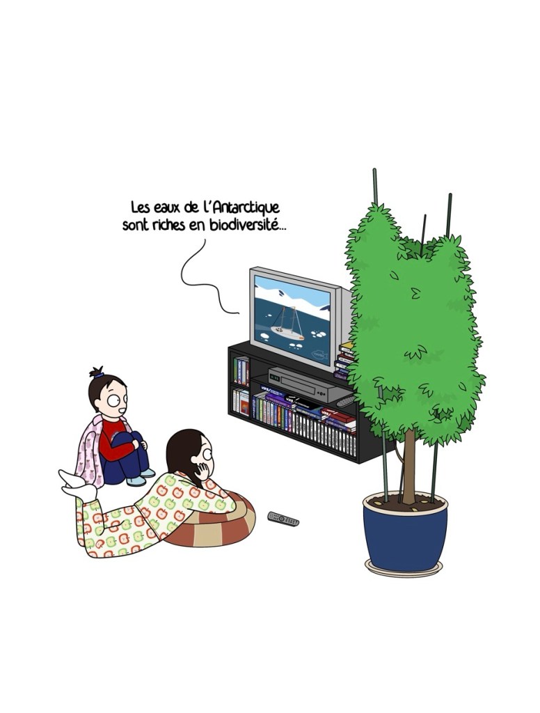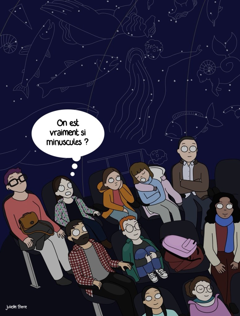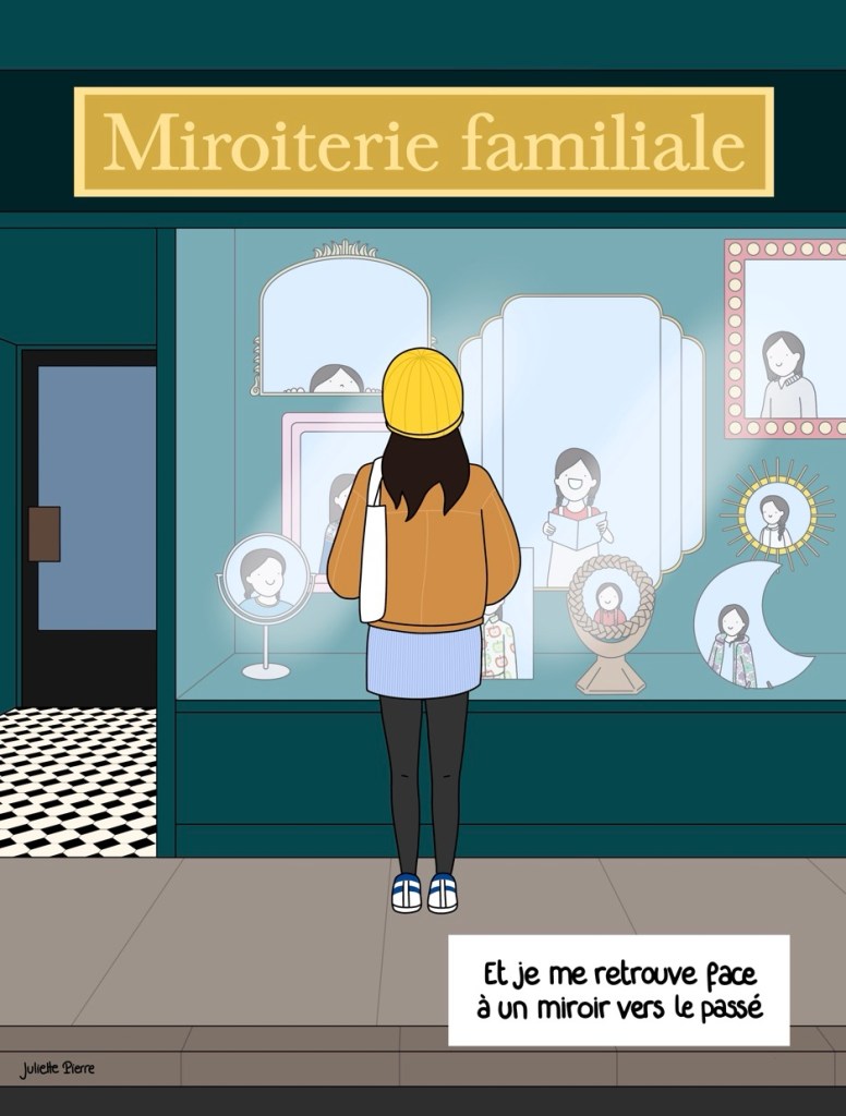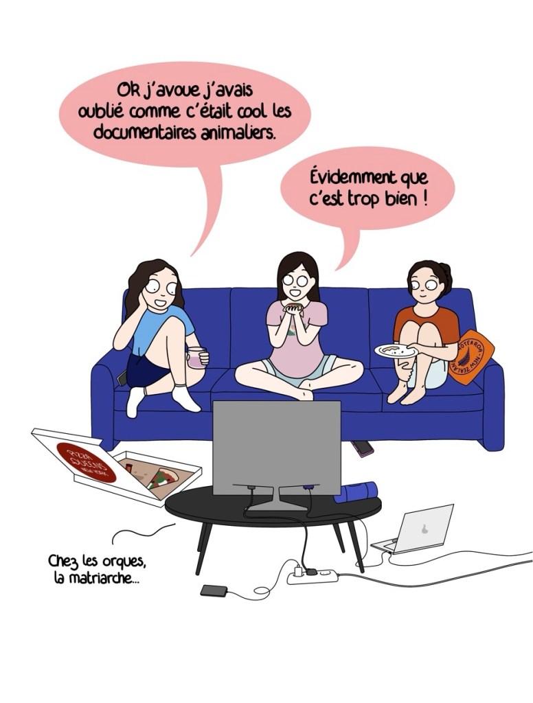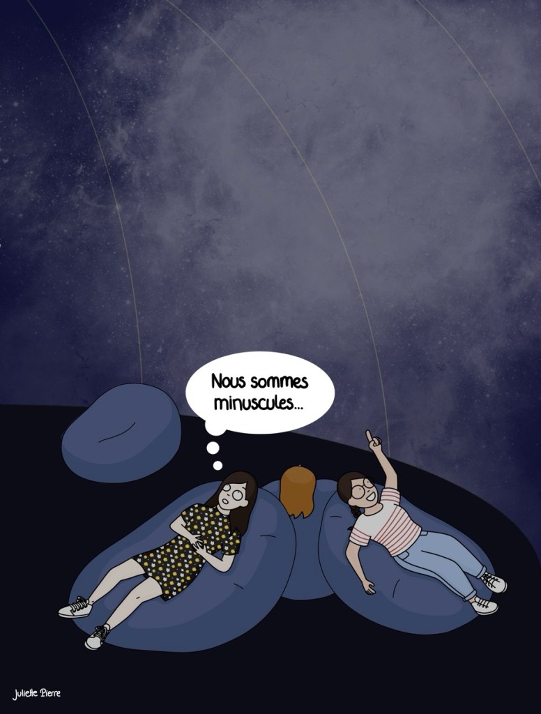 C’est une BD qui parle d’enfance et de nostalgie, de passion pour les documentaires, de toujours pas savoir manger de crèmes glacées, d’étoiles dans le ciel et de livres qui s’entassent.